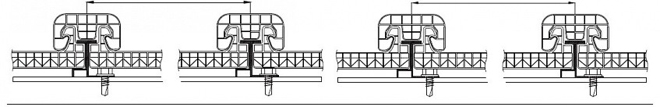 次檁上的T形緊固件間為最大間隔,風(fēng)載為1kPa(毫米)